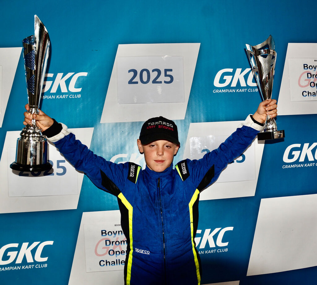 Archie Tosh stormed to victory, claiming both the class win and the Bambino Trophy. Austin Noble impressed with second, also taking novice honours, with Walter Forrest in third.